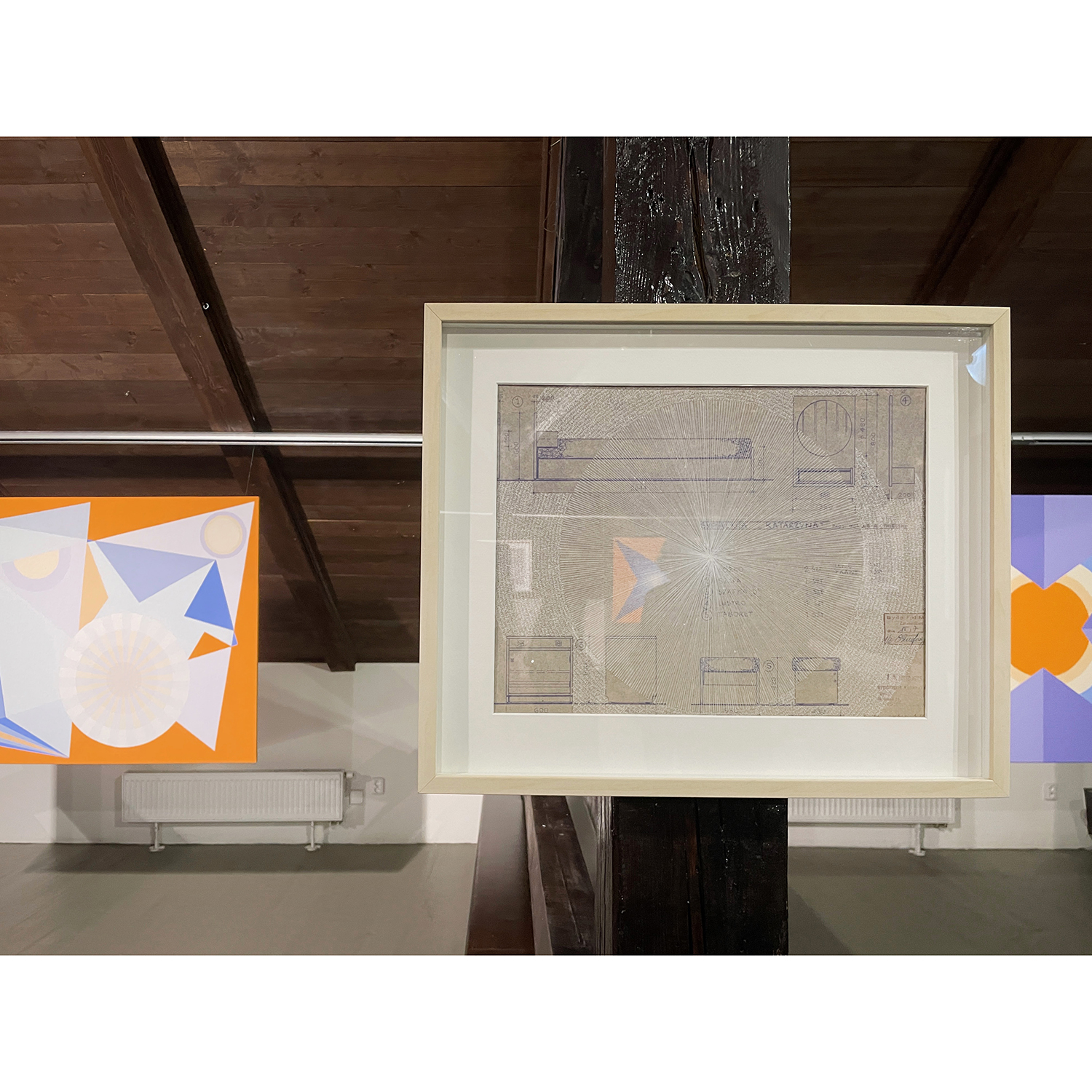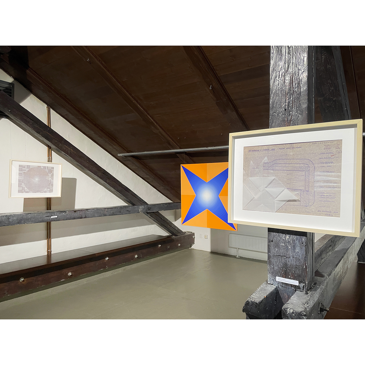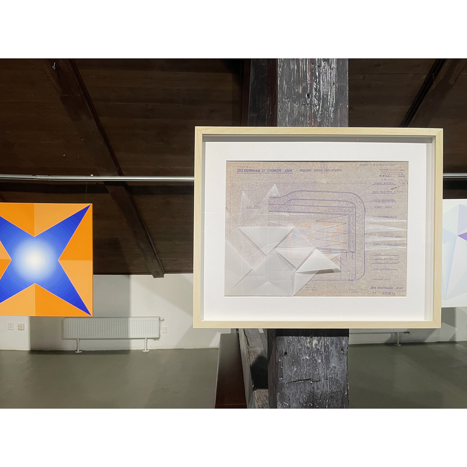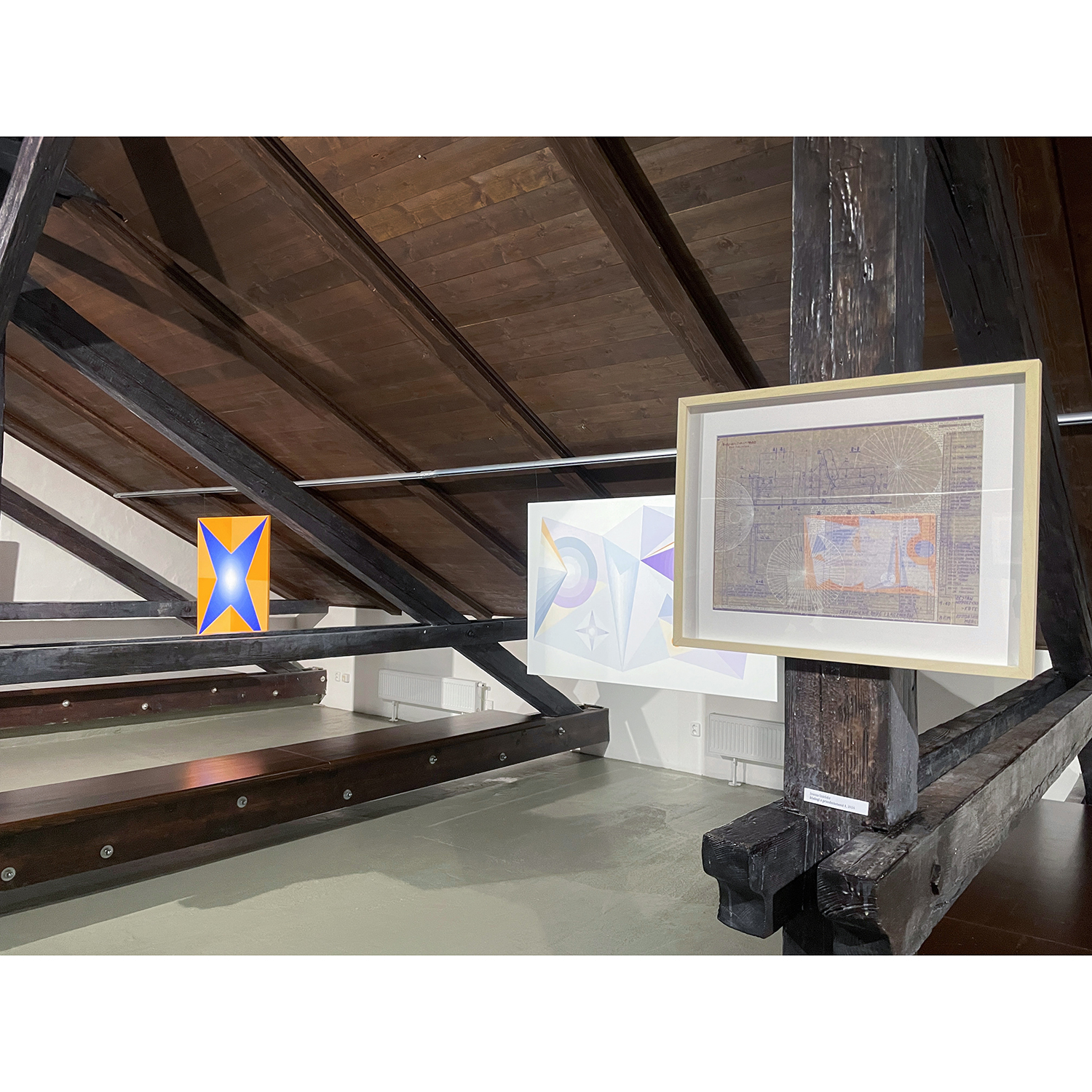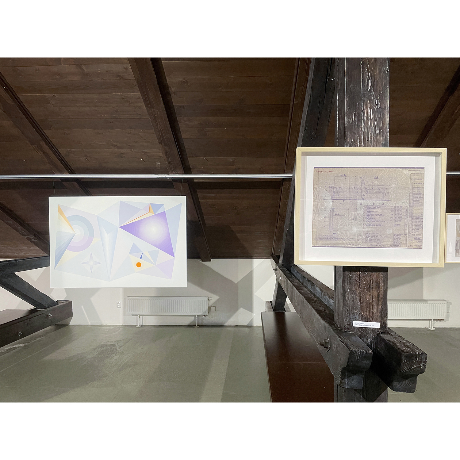 [PL] Joanna Imielska: "Dialogi z przedmiotami" to kolejna seria przynależąca do cyklu zatytułowanego Archeologia z mojej szuflady, w którym główną rolę odgrywają stare, wydawałoby się zupełnie niepotrzebne rzeczy: zeszyty, notatniki, gazety, katalogi, listy, projekty, nawiązałam współpracę z tymi osieroconymi rzeczami i jednocześnie metafizyczną łączność z ich autorami / autorkami. Trwałość tych odnalezionych przedmiotów przypomniała mi o naszej nietrwałości, w obrazowy sposób mówi o tym Wisława Szymborska: „Korona przeczekała głowę / Przegrała dłoń do rękawicy / Zwyciężył prawy but nad nogą / Mój wyścig z suknią nadal trwa”. To prawda, że przedmioty potrafią przetrwać ludzi, ale to właśnie ludzie nadają im sens i dlatego opuszczone przez ludzi, zostają tego sensu pozbawione, chyba że zostaną na nowo przygarnięte i otoczone opieką. Tym razem otoczyłam opieką i podjęłam dialog z projektami mebli autorstwa mojego taty, pochodzą one z lat 70-tych XX wieku, dopisałam na nich swoje rysunki. Projekty, które do pewnego momentu nie stanowiły dla mnie istotnego materiału, po latach nabrały szczególnej wartości, okazały się nie tylko wehikułami pamięci, zainteresował mnie również materiał – papier o specyficznym kolorze i strukturze, naniesione na nim techniczne rysunki i odręczne zapisy. Zafascynowała mnie nieustanna przemiana tych materiałów, w każdym ułamku sekundy inna, stwarzana na nowo oraz możliwość dopisania swojej historii, zachowanie ciągłości i współzależności. Rysunki i obiekty-kolaże z serii "Dialogi z przedmiotami" stały się inspiracją do powstania obrazów, przeniosłam na płótno wyselekcjonowane z nich geometryczne formy, które stworzyły abstrakcyjny system znaków, symboli i gestów. Linie zagiętej kalki wyznaczyły kierunki kompozycji, a kolor sprawił, że obrazy można oglądać na różne sposoby i w różny sposób je interpretować. [CS] Joanna Imielska: "Dialogy s předměty" je název další série patřící do souboru Archeologie z mého šuplíku, v němž hlavní roli hrají staré, zdánlivě zcela nepotřebné věci: sešity, poznámky, noviny, katalogy, dopisy, projekty. S těmito osiřelými věcmi jsem navázala spolupráci a zároveň metafyzické spojení s jejich autory/autorkami.. Trvanlivost těchto nalezených předmětů mi připomněla naši pomíjivost, jak obrazně říká Wisława Szymborska: "Koruna přežila halvu / Ztratila ruku rukavice / Zvítězila pravá bota nad nohou / Můj závod s šaty pokračuje”. Je pravda, že předměty mohou přežít lidi, ale jsou to lidé, kteří jim dávají smysl, a proto, když je lidé opustí, jsou tohoto smyslu zbaveny, pokud nejsou znovu přijaty a je o ně znovu pečováno. Tentokrát jsem zahrnula péčí a zahájila dialog s návrhy nábytku od mého otce, pocházejícími ze 70. let, „dopsala“ jsem na ně své kresby. Projekty, které pro mne do jistého momentu nebyly důležitým materiálem, získaly po mnoha letech zvláštní hodnotu, ukázalo se, že jsou nejen nositeli paměti, ale zajímal mě také materiál - papír se specifickou barvou a strukturou, technické výkresy a na nich ručně psané poznámky. Fascinovala mě neustálá proměna těchto materiálů, v každém zlomku vteřiny jiná, znovu vytvářená a rovněž možnost připsání vlastního příběhu, zachování kontinuity a vzájemné závislosti. Inspirací pro obrazy se staly kresby a objekty-koláže z cyklu 'Dialogy s objekty", z nich vybrané geometrické formy jsem přenesla na plátno, čímž vznikl abstraktní systém znaků, symbolů a gest. Čáry složeného pauzovacího papíru určovaly směry kompozice a barva umožňovala prohlížet obrázky různými způsoby a interpretovat je různými způsoby. [CS] Dáša Lasotová: "Soubor Dialogy s předměty" (2024) jistým způsobem navazuje na dřívější práce nazvané Věcné vzpomínky. Věcné vzpomínky jsou vytvořeny z předmětů, které pocházejí od konkrétních rodinných příslušníků, asambláže z věcí dotýkaných konkrétními, blízkými lidmi. Věci, použité v Dialozích s předměty, také převážně pocházejí z domu, kde delší či kratší dobu přebývaly v různých místech, zpravidla zapomenuty, ale přechovávány z důvodů funkčnosti, sentimentu, estetického působení, zvláštní přitažlivosti. Z nich vzniklé asambláže nemají primárně vzpomínkový charakter. Svými novými uskupeními se vyjadřují k současnosti, vytvářejí nové texty. Dialogy probíhají skrze jejich funkční interakce a reinterpretace jednak mezi autorkou a jimi, jednak mezi nimi samotnými. [PL] Dáša Lasotová: "Zbiór Dialogi z przedmiotami" (2024) jest w pewnym sensie kontynuacją wcześniejszych prac zatytułowanych Wspomnienia materialne/obiektów. Wspomnienia materialne/obiektów powstają z przedmiotów pochodzących od konkretnych członków rodziny, stanowią zbiór rzeczy, których dotykały konkretne, bliskie osoby. Rzeczy wykorzystywane w Dialogach z przedmiotami również w większości pochodzą z domu, gdzie dłużej lub krócej przebywały w różnych miejscach, zazwyczaj zapomniane, ale trzymane ze względu na funkcjonalność, sentyment, efekt estetyczny, szczególny urok. Powstałe z nich zespoły nie mają przede wszystkim charakteru pamiątkowego. Poprzez swoje nowe ugrupowania wypowiadają się na temat teraźniejszości, tworzą nowe teksty. Dialogi odbywają się poprzez ich funkcjonalne interakcje i reinterpretacje zarówno pomiędzy autorem a nimi, jak i pomiędzy nimi samymi. KURATORKA WYSTAWY: DÁŠA LASOTOVÁ / FOT. JOANNA IMIELSKA, LADISLAV SZPYRC
