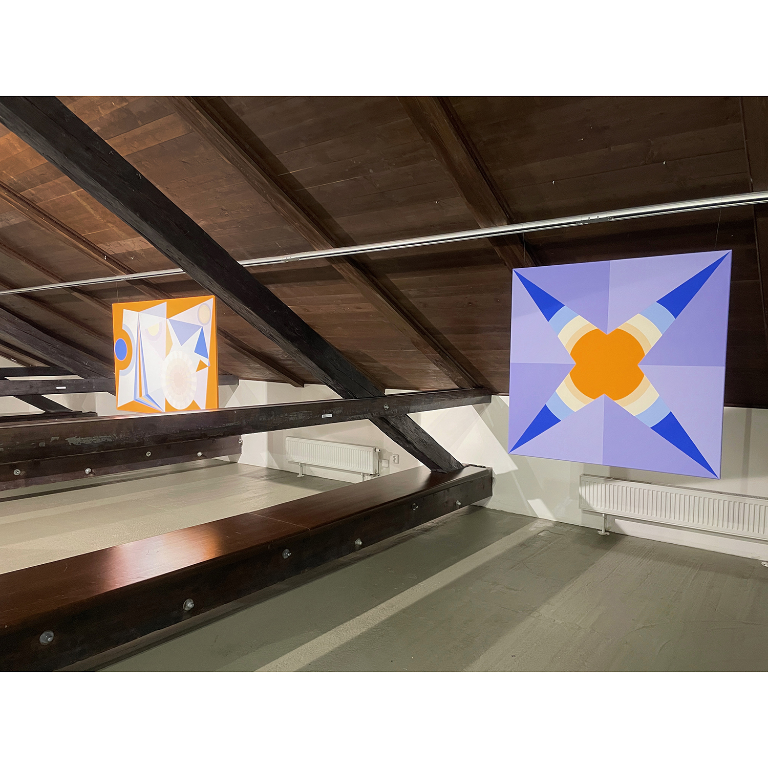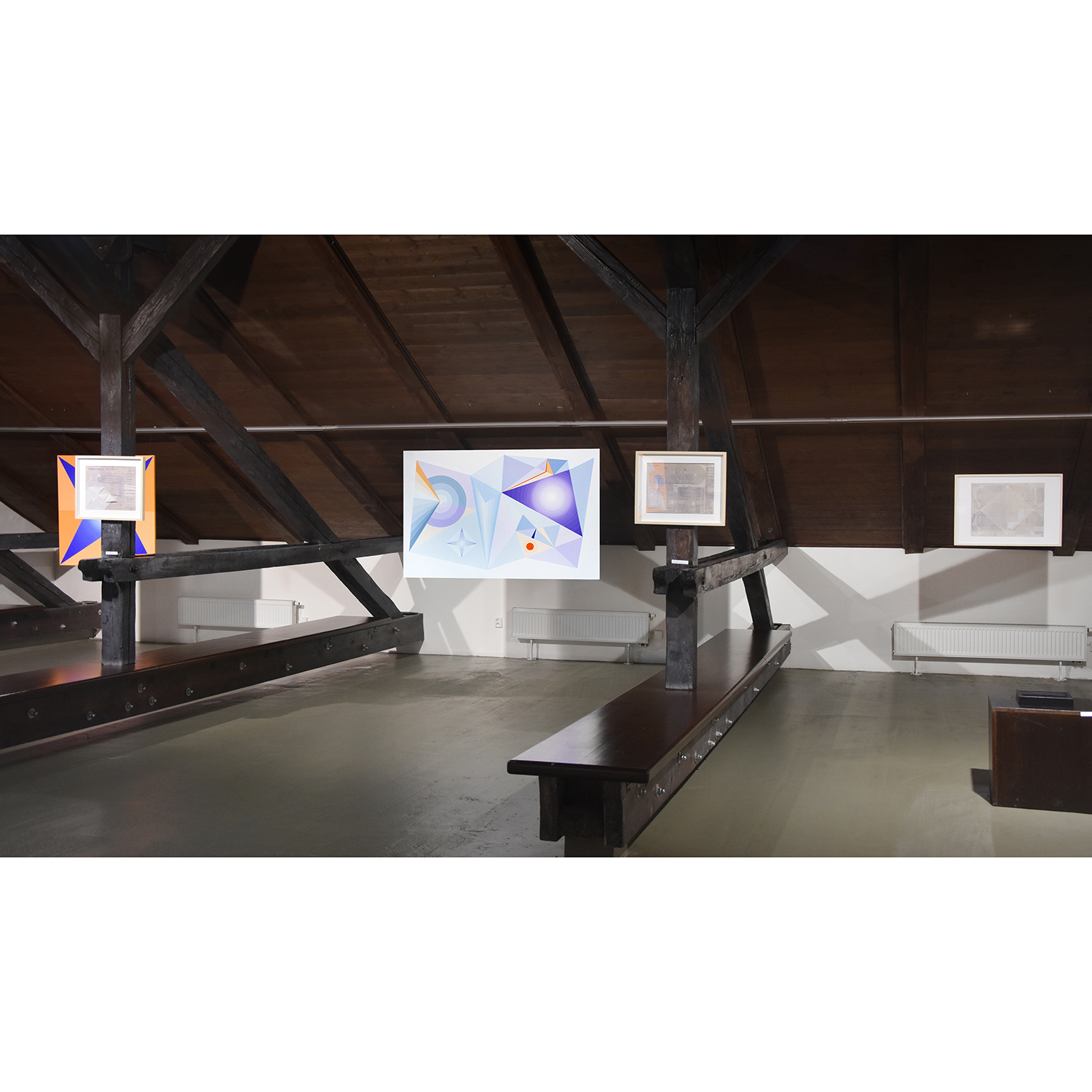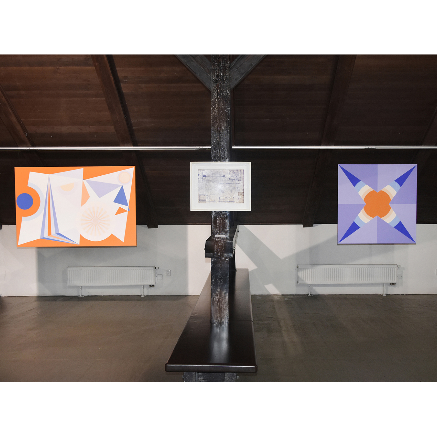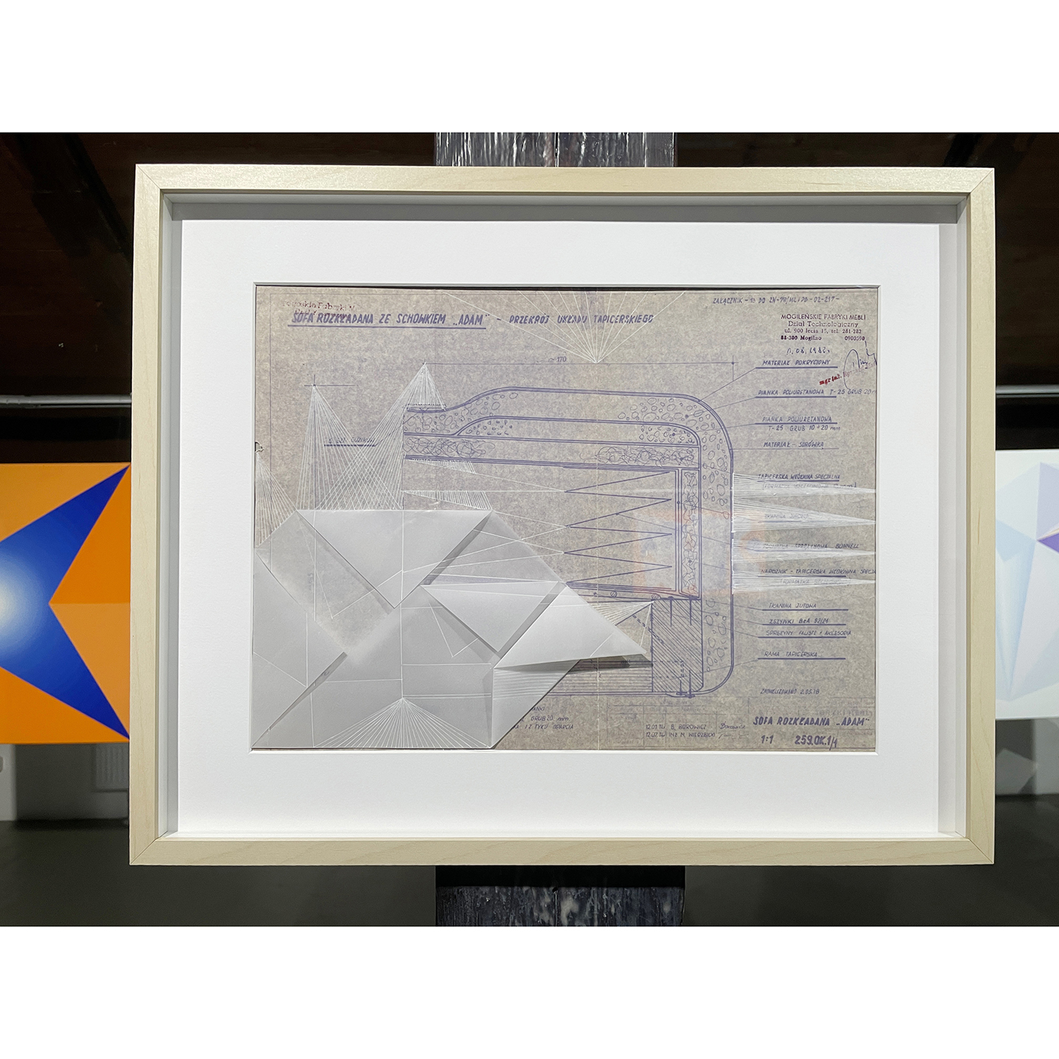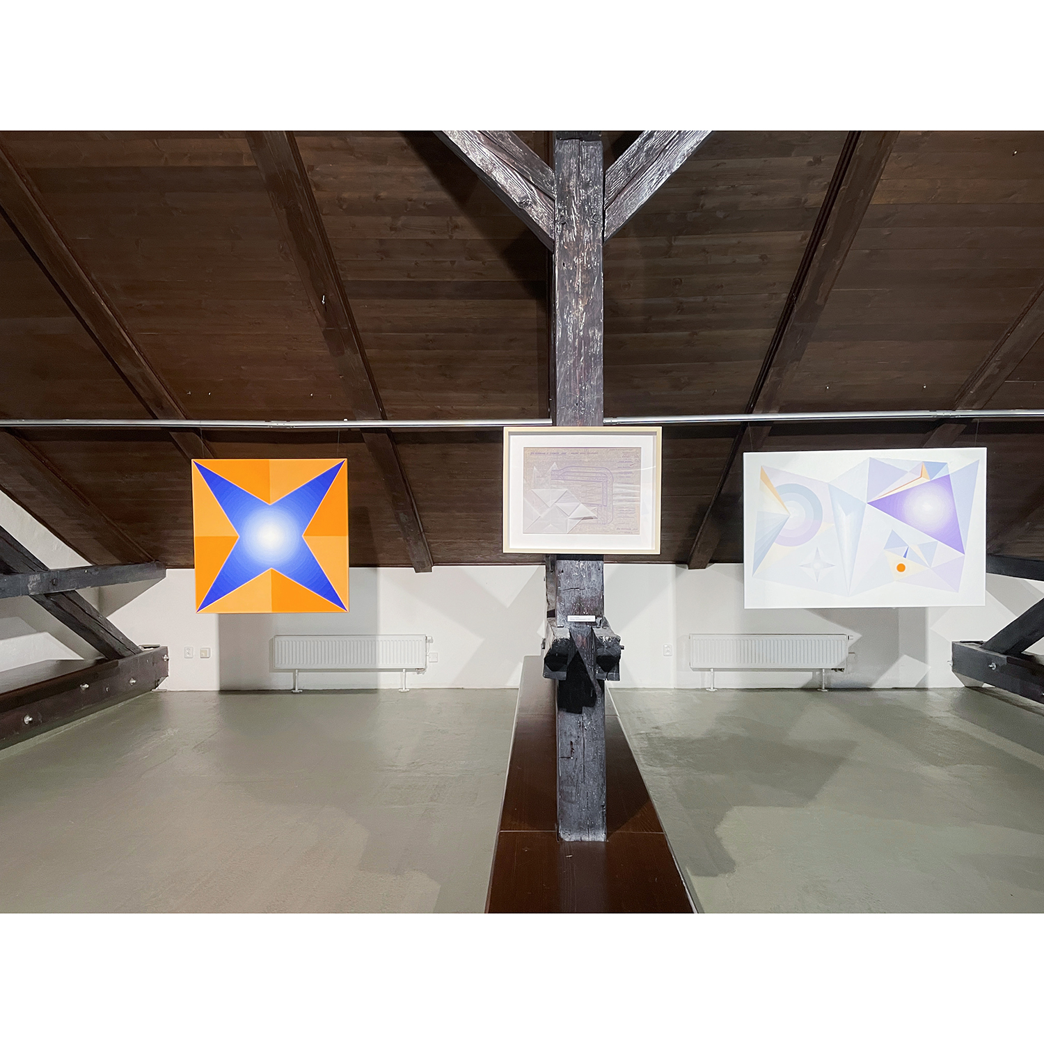 [PL] Joanna Imielska: "Dialogi z przedmiotami" to kolejna seria przynależąca do cyklu zatytułowanego Archeologia z mojej szuflady, w którym główną rolę odgrywają stare, wydawałoby się zupełnie niepotrzebne rzeczy: zeszyty, notatniki, gazety, katalogi, listy, projekty, nawiązałam współpracę z tymi osieroconymi rzeczami i jednocześnie metafizyczną łączność z ich autorami / autorkami. Trwałość tych odnalezionych przedmiotów przypomniała mi o naszej nietrwałości, w obrazowy sposób mówi o tym Wisława Szymborska: „Korona przeczekała głowę / Przegrała dłoń do rękawicy / Zwyciężył prawy but nad nogą / Mój wyścig z suknią nadal trwa”. To prawda, że przedmioty potrafią przetrwać ludzi, ale to właśnie ludzie nadają im sens i dlatego opuszczone przez ludzi, zostają tego sensu pozbawione, chyba że zostaną na nowo przygarnięte i otoczone opieką. Tym razem otoczyłam opieką i podjęłam dialog z projektami mebli autorstwa mojego taty, pochodzą one z lat 70-tych XX wieku, dopisałam na nich swoje rysunki. Projekty, które do pewnego momentu nie stanowiły dla mnie istotnego materiału, po latach nabrały szczególnej wartości, okazały się nie tylko wehikułami pamięci, zainteresował mnie również materiał – papier o specyficznym kolorze i strukturze, naniesione na nim techniczne rysunki i odręczne zapisy. Zafascynowała mnie nieustanna przemiana tych materiałów, w każdym ułamku sekundy inna, stwarzana na nowo oraz możliwość dopisania swojej historii, zachowanie ciągłości i współzależności. Rysunki i obiekty-kolaże z serii "Dialogi z przedmiotami" stały się inspiracją do powstania obrazów, przeniosłam na płótno wyselekcjonowane z nich geometryczne formy, które stworzyły abstrakcyjny system znaków, symboli i gestów. Linie zagiętej kalki wyznaczyły kierunki kompozycji, a kolor sprawił, że obrazy można oglądać na różne sposoby i w różny sposób je interpretować. [CS] Joanna Imielska: "Dialogy s předměty" je název další série patřící do souboru Archeologie z mého šuplíku, v němž hlavní roli hrají staré, zdánlivě zcela nepotřebné věci: sešity, poznámky, noviny, katalogy, dopisy, projekty. S těmito osiřelými věcmi jsem navázala spolupráci a zároveň metafyzické spojení s jejich autory/autorkami.. Trvanlivost těchto nalezených předmětů mi připomněla naši pomíjivost, jak obrazně říká Wisława Szymborska: "Koruna přežila halvu / Ztratila ruku rukavice / Zvítězila pravá bota nad nohou / Můj závod s šaty pokračuje”. Je pravda, že předměty mohou přežít lidi, ale jsou to lidé, kteří jim dávají smysl, a proto, když je lidé opustí, jsou tohoto smyslu zbaveny, pokud nejsou znovu přijaty a je o ně znovu pečováno. Tentokrát jsem zahrnula péčí a zahájila dialog s návrhy nábytku od mého otce, pocházejícími ze 70. let, „dopsala“ jsem na ně své kresby. Projekty, které pro mne do jistého momentu nebyly důležitým materiálem, získaly po mnoha letech zvláštní hodnotu, ukázalo se, že jsou nejen nositeli paměti, ale zajímal mě také materiál - papír se specifickou barvou a strukturou, technické výkresy a na nich ručně psané poznámky. Fascinovala mě neustálá proměna těchto materiálů, v každém zlomku vteřiny jiná, znovu vytvářená a rovněž možnost připsání vlastního příběhu, zachování kontinuity a vzájemné závislosti. Inspirací pro obrazy se staly kresby a objekty-koláže z cyklu 'Dialogy s objekty", z nich vybrané geometrické formy jsem přenesla na plátno, čímž vznikl abstraktní systém znaků, symbolů a gest. Čáry složeného pauzovacího papíru určovaly směry kompozice a barva umožňovala prohlížet obrázky různými způsoby a interpretovat je různými způsoby. [CS] Dáša Lasotová: "Soubor Dialogy s předměty" (2024) jistým způsobem navazuje na dřívější práce nazvané Věcné vzpomínky. Věcné vzpomínky jsou vytvořeny z předmětů, které pocházejí od konkrétních rodinných příslušníků, asambláže z věcí dotýkaných konkrétními, blízkými lidmi. Věci, použité v Dialozích s předměty, také převážně pocházejí z domu, kde delší či kratší dobu přebývaly v různých místech, zpravidla zapomenuty, ale přechovávány z důvodů funkčnosti, sentimentu, estetického působení, zvláštní přitažlivosti. Z nich vzniklé asambláže nemají primárně vzpomínkový charakter. Svými novými uskupeními se vyjadřují k současnosti, vytvářejí nové texty. Dialogy probíhají skrze jejich funkční interakce a reinterpretace jednak mezi autorkou a jimi, jednak mezi nimi samotnými. [PL] Dáša Lasotová: "Zbiór Dialogi z przedmiotami" (2024) jest w pewnym sensie kontynuacją wcześniejszych prac zatytułowanych Wspomnienia materialne/obiektów. Wspomnienia materialne/obiektów powstają z przedmiotów pochodzących od konkretnych członków rodziny, stanowią zbiór rzeczy, których dotykały konkretne, bliskie osoby. Rzeczy wykorzystywane w Dialogach z przedmiotami również w większości pochodzą z domu, gdzie dłużej lub krócej przebywały w różnych miejscach, zazwyczaj zapomniane, ale trzymane ze względu na funkcjonalność, sentyment, efekt estetyczny, szczególny urok. Powstałe z nich zespoły nie mają przede wszystkim charakteru pamiątkowego. Poprzez swoje nowe ugrupowania wypowiadają się na temat teraźniejszości, tworzą nowe teksty. Dialogi odbywają się poprzez ich funkcjonalne interakcje i reinterpretacje zarówno pomiędzy autorem a nimi, jak i pomiędzy nimi samymi. KURATORKA WYSTAWY: DÁŠA LASOTOVÁ / FOT. JOANNA IMIELSKA, LADISLAV SZPYRC